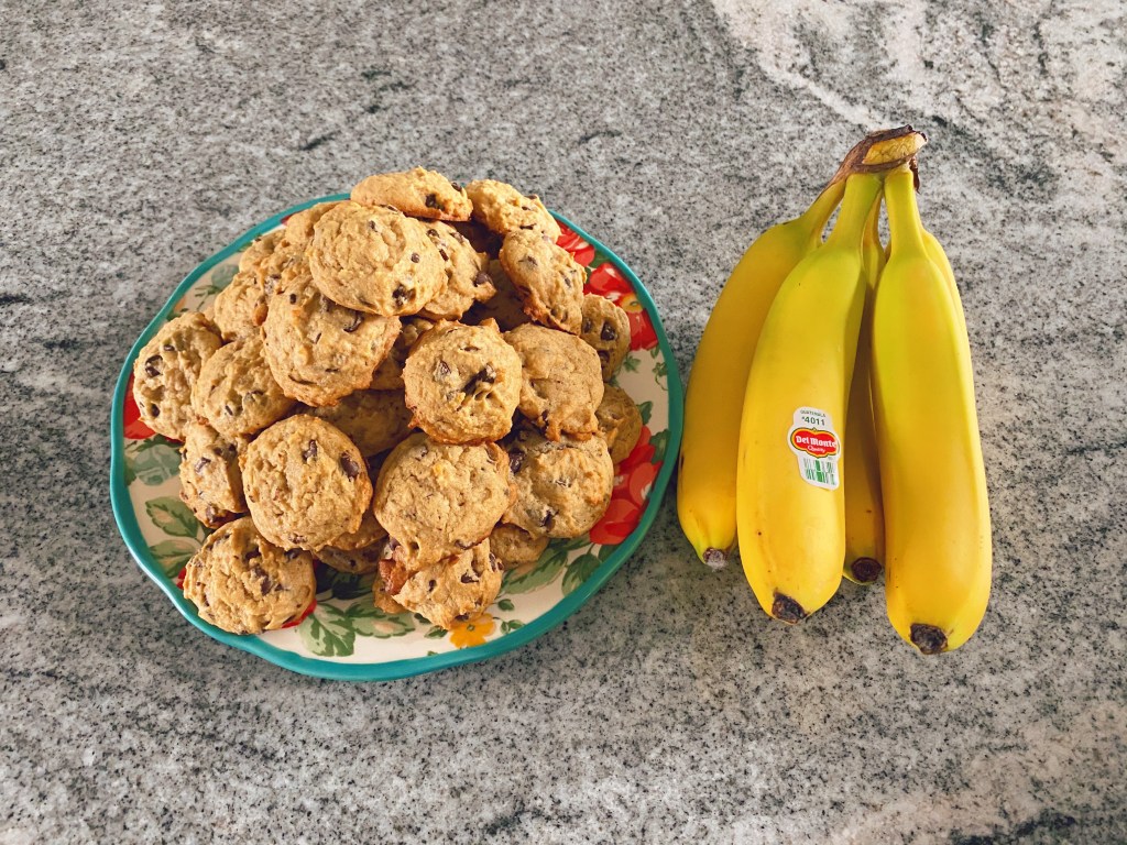 As I’ve mentioned before, chocolate chip cookies are a classic family favorite. However, I find them boring to make. Instead of using eggs, I used our two ripe bananas to make a different kind of chocolate chip cookie.